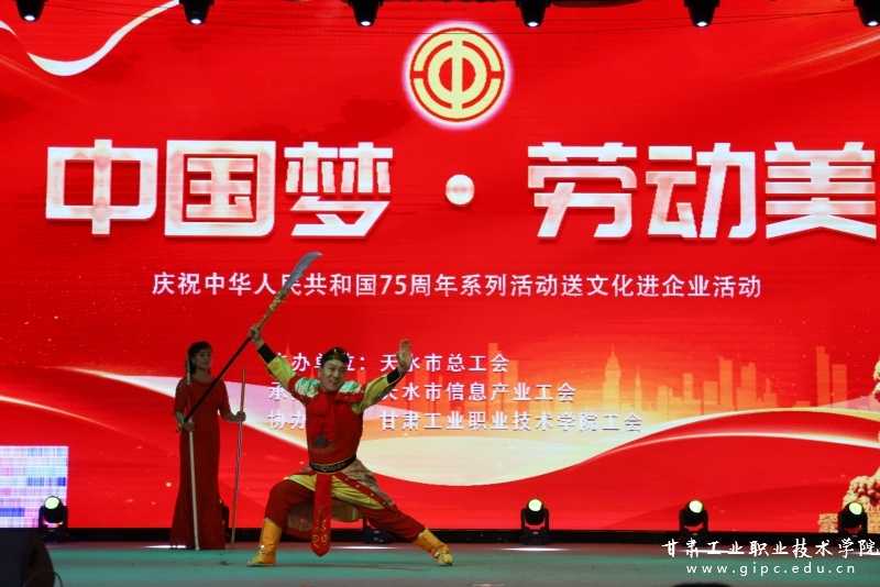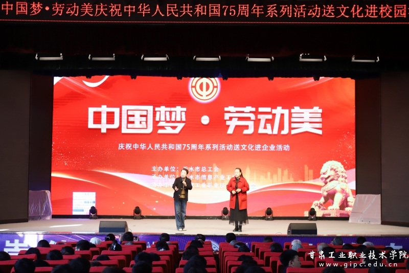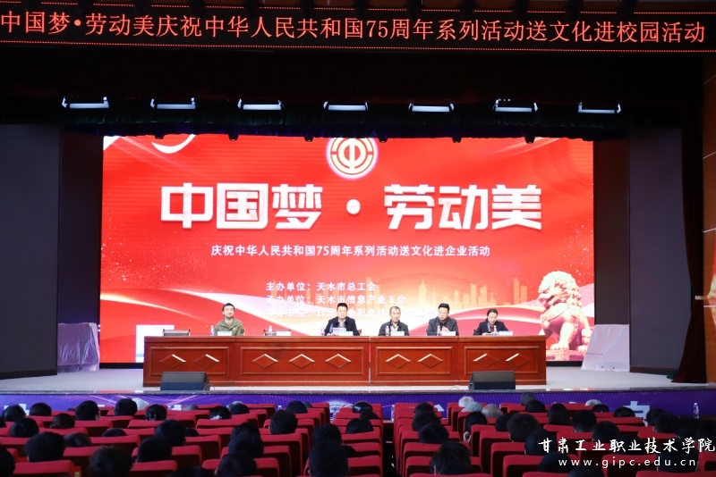 此次天水市总工会主办的“中国梦·劳动美”庆祝中华人民共和国75周年系列活动送文化进校园,内容丰富、针对性强,对提升我校师生提升艺术修养、推进校园文化建设具有很强的引领和指导性意义。