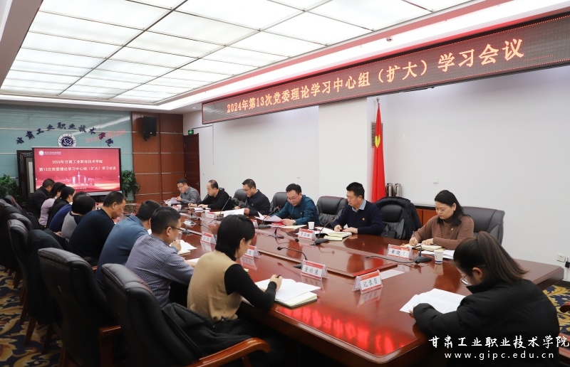 12月26日下午,学校在图书馆四楼会议室召开2024年第十三次党委理论学习中心组(扩大)学习会议。会议由党委书记坚葆林主持,其他在家党委班子成员出席会议,各二级学院党组织主要负责同志,各直属党支部书记、马克思主义学院党支部书记,党委工作部门、马克思主义学院、工会、团委主要负责同志列席会议。