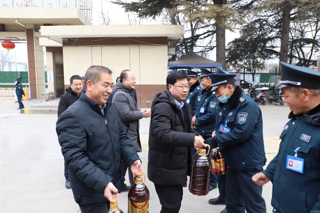 校领导一行先后来到楼宇值班室、学校门房、公寓值班室、锅炉房等处,看望正在值班的一线工作人员。每到一处都与大家亲切交谈,感谢他们为保障学校相关工作正常运转付出的辛勤劳动,代表学校向他们拜年,感谢他们舍小家顾大家,用心用情做好寒假尤其是春节期间的服务保障工作,为大家提供更加优质、更加暖心的服务,让在校教职员工度过一个平安健康、欢乐祥和、温馨暖心的春节假期。