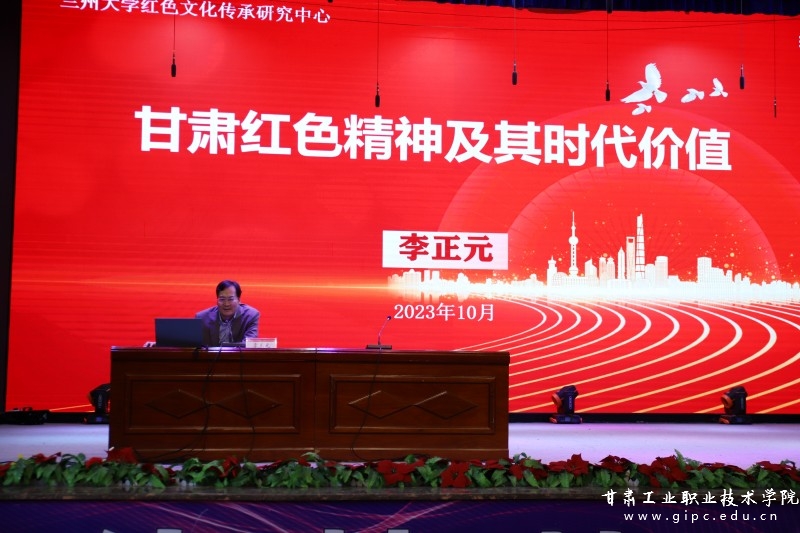 报告中,李正元通过讲故事、举例子,从红色精神概念、甘肃红色精神、甘肃红色精神的时代价值三个方面展开讲授。对中国共产党团结带领中国人民在百年奋斗中形成的伟大建党精神和共产党人的精神谱系、尤其是在甘肃凝炼形成的具有甘肃特色的“甘肃红色精神”进行了重点阐释。他表示甘肃是一片红色的土地,孕育了南梁精神、会宁会师精神、铁人精神、庄浪梯田精神、八步沙精神、莫高精神、甘肃精神等红色精神。他指出,形成于不同时期的甘肃红色精神具有深沉的底蕴、独特的魅力和丰富的内涵,是在新时代以中国式现代化推进强国建设、民族复兴征程上取之不尽、用之不竭的精神食粮和力量源泉,是我们成长的“营养剂”“教科书”“必修课”,具有政治、经济、文化、教育等多重时代价值。广大青年要传承红色基因,弘扬红色精神,以红色精神照亮前行之路,争做有理想、敢担当、能吃苦、肯奋斗的新时代好青年。