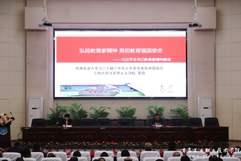 10月9日下午,学校藉滨讲堂第四期在图书馆五楼智敏报告厅举行,报告邀请到全国优秀教师、甘肃省学习贯彻党的二十届三中全会精神专家学者宣讲团成员、兰州大学马克思主义学院蒙慧教授作题为“弘扬教育家精神,勇担教育强国使命”的专题宣讲。宣讲报告会由党委副书记文云主持,学校专兼职教师300余人参加。