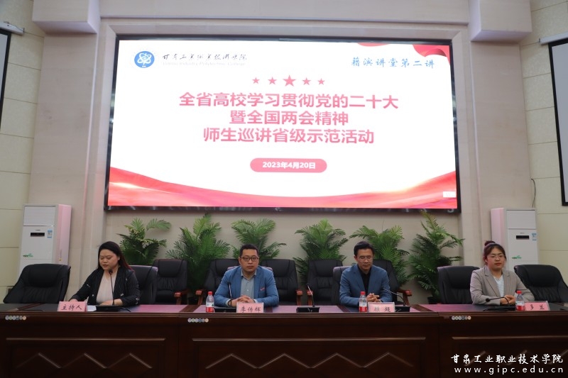 此次巡讲活动是我校藉滨讲堂第二讲。学习贯彻党的二十大精神,意义深远,责任重大。下一步,党委宣传部将继续以藉滨讲堂为平台,结合已经开展的主题教育活动,持续做好习近平新时代中国特色社会主义思想的理论宣讲工作,引导全体师生在新征程上锚定党的二十大提出的战略部署和战略目标,踔厉奋发、勇毅前行、团结奋斗、开拓进取,在新起点上不断开创甘肃工业职业技术学院建设发展新局面。